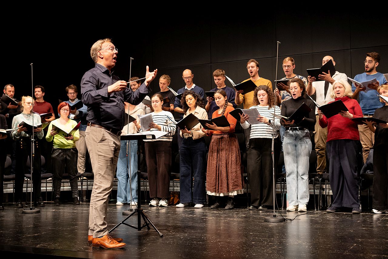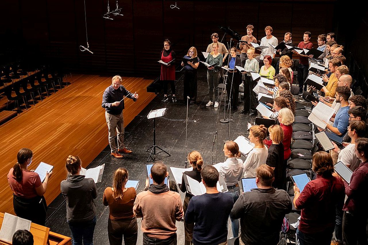 In intensiven Probenphasen arbeiteten die Akademisten aus Vilnius, Zagreb und Karlsruhe gemeinsam mit erfahrenen Mitgliedern des Vocalensembles Rastatt an stilistisch vielseitigem und anspruchsvollem Repertoire. Vorträge durch Fachleute renommierter Opern- und Rundfunkchöre vermittelten praxisrelevantes Wissen über künstlerische, stimmtechnische und berufliche Aspekte des Choralltags. Mitglieder des Rundfunkchores Berlin coachten die jungen Sängerinnen und Sänger. Damit schlug das Projekt eine Brücke zwischen akademischer Ausbildung und professioneller Berufspraxis. Die 2. Internationale Ensemble Akademie vom 4.-8. Oktober hat das Format gegenüber der 1. Akademie 2021 über die Landesgrenzen hinaus erweitert: Neben Studierenden der Musikhochschule Karlsruhe nahmen erstmals junge Sängerinnen und Sänger aus Partnerhochschulen in Vilnius und Zagreb teil. Höhepunkt war das begeistert aufgenommene Abschlusskonzert im Wolfgang-Rihm-Forum am 7. Okt., bei dem Rektor Prof. Dr. Matthias Wiegandt die Bedeutung dieses Projektes würdigte. Mit dieser Initiative stärkten das Vocalensemble Rastatt und die Hochschule für Musik Karlsruhe die Rolle des Ensemblegesangs als zukunftsweisendes Berufsfeld – und eröffneten talentierten Nachwuchssängerinnen und -sängern wertvolle Perspektiven für ihre künstlerische Laufbahn.